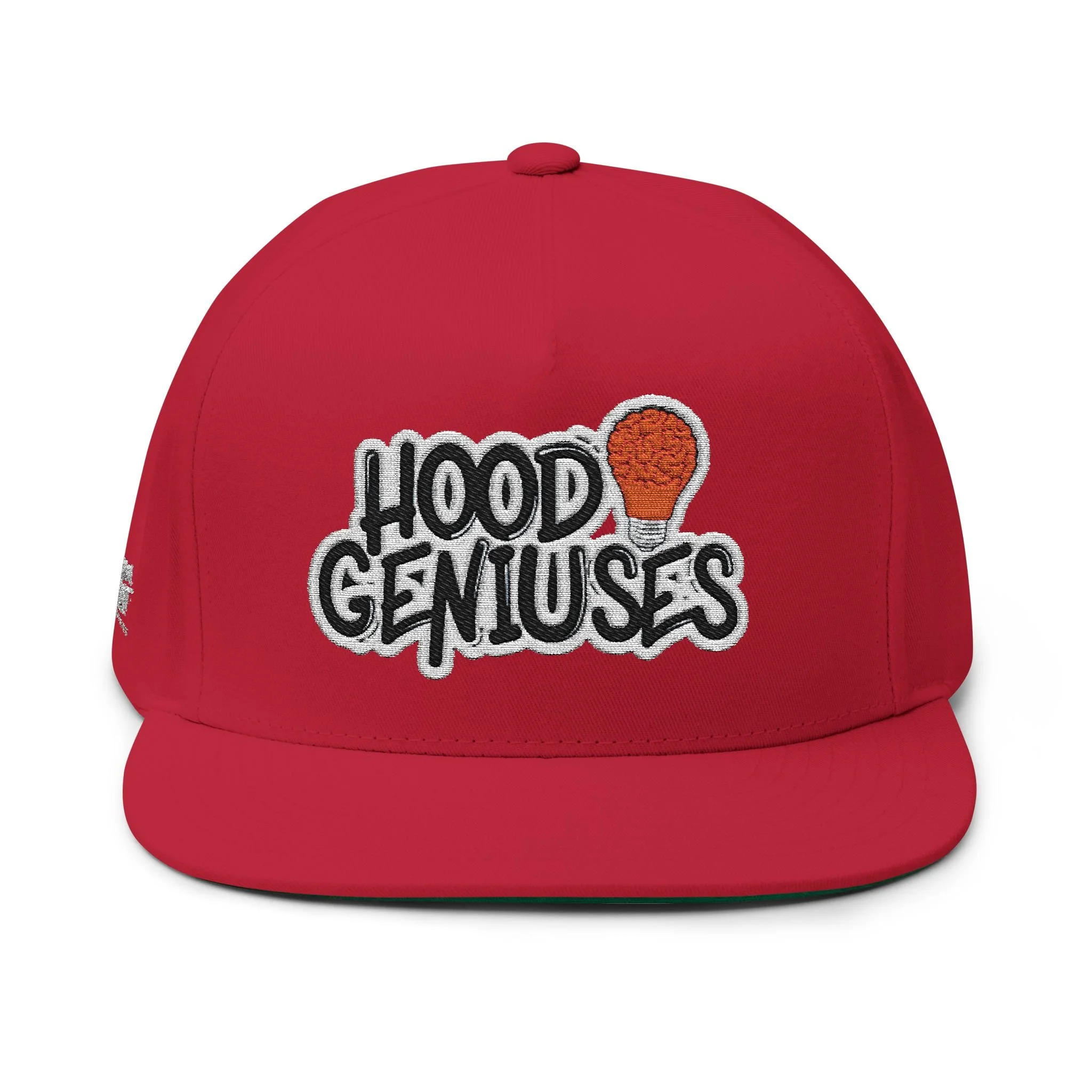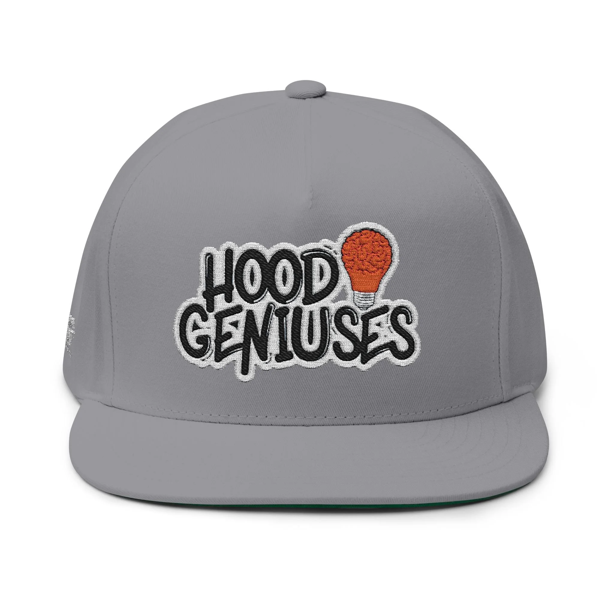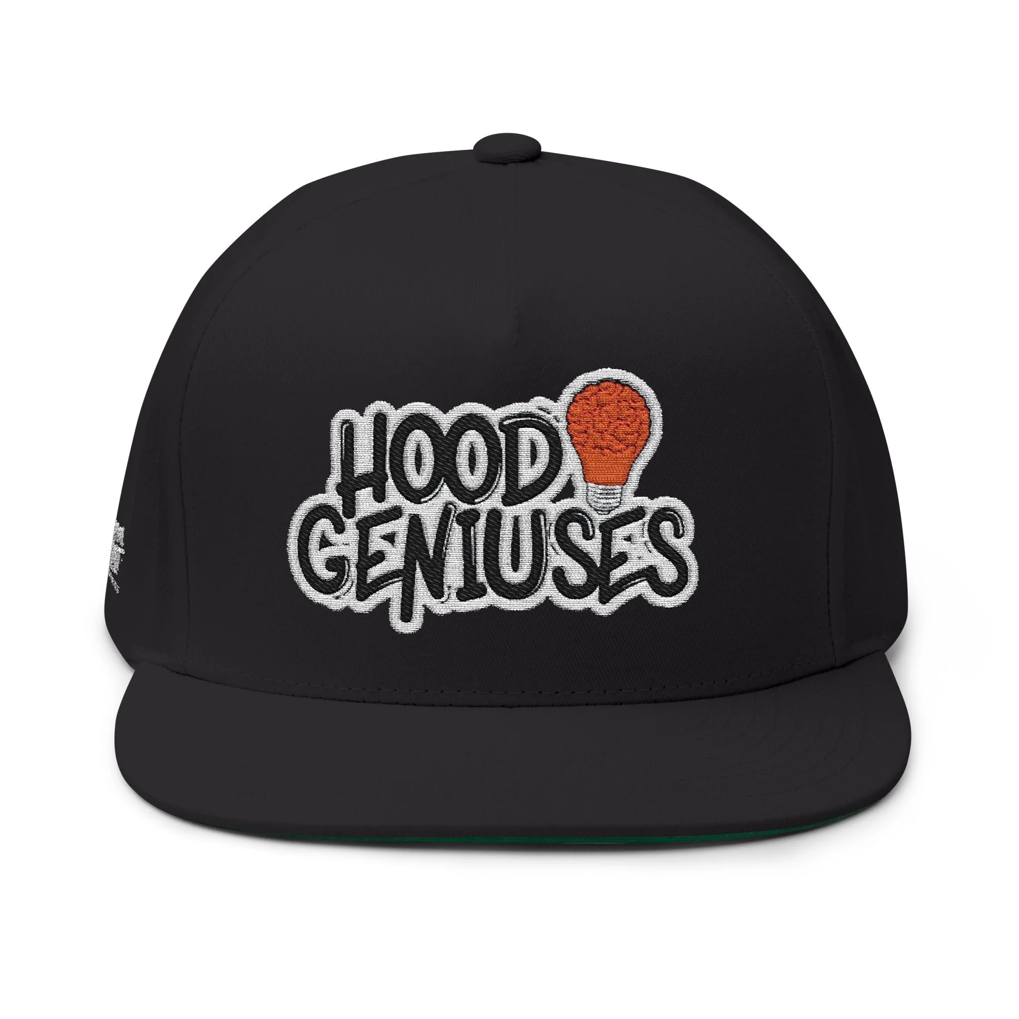 This structured, high-profile flat bill cap brings street-ready style with a vintage cotton twill feel. The bold embroidered “Hood Geniuses” patch and the small Dream First Clothing logo placed on the back and right side panel give it character that reads confident and clever. The five-panel construction and sewn eyelets keep the shape sharp while allowing airflow. A green undervisor adds a subtle retro contrast whenever you tilt the brim. The adjustable snapback lets you dial in a comfortable fit for everyday wear or when you just want to look stylish while strolling in the city.