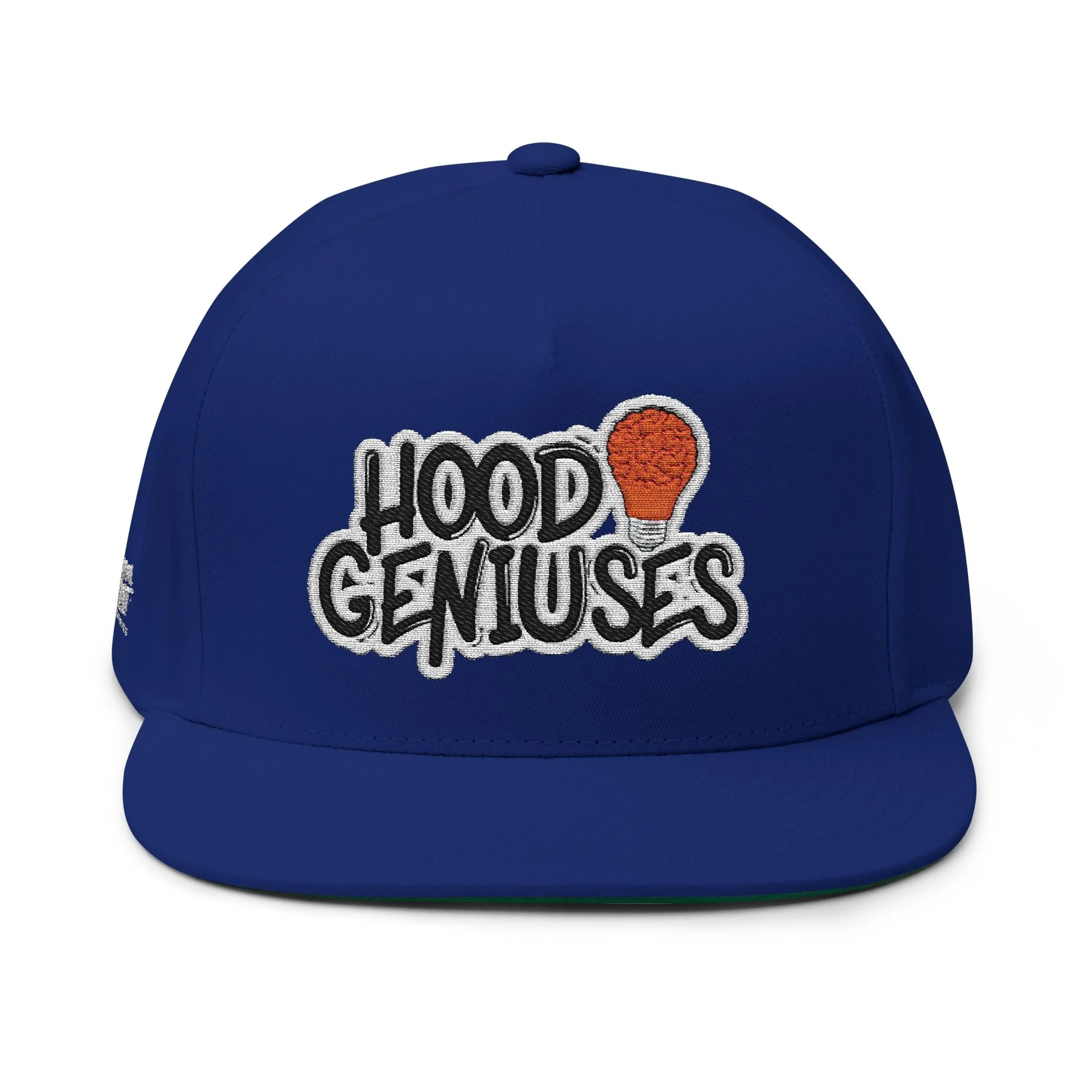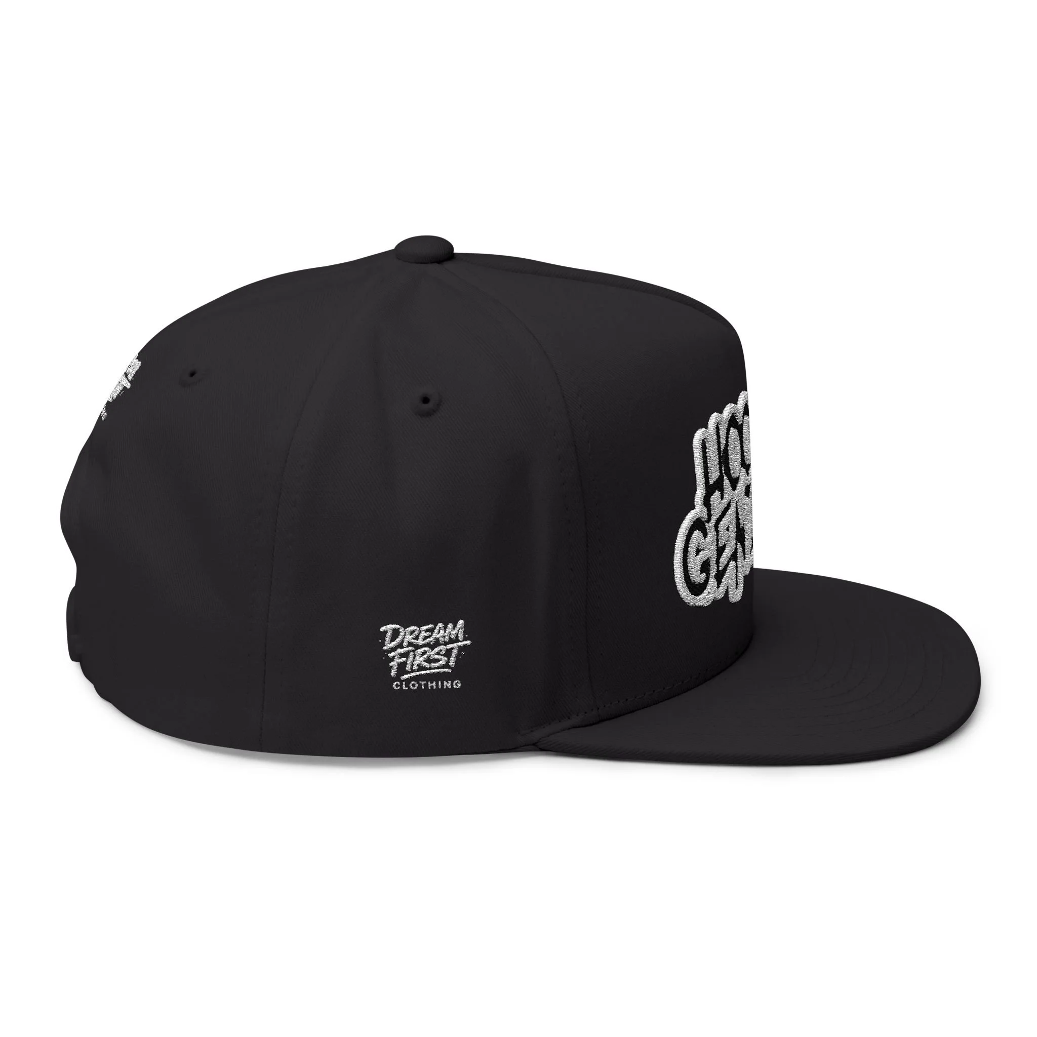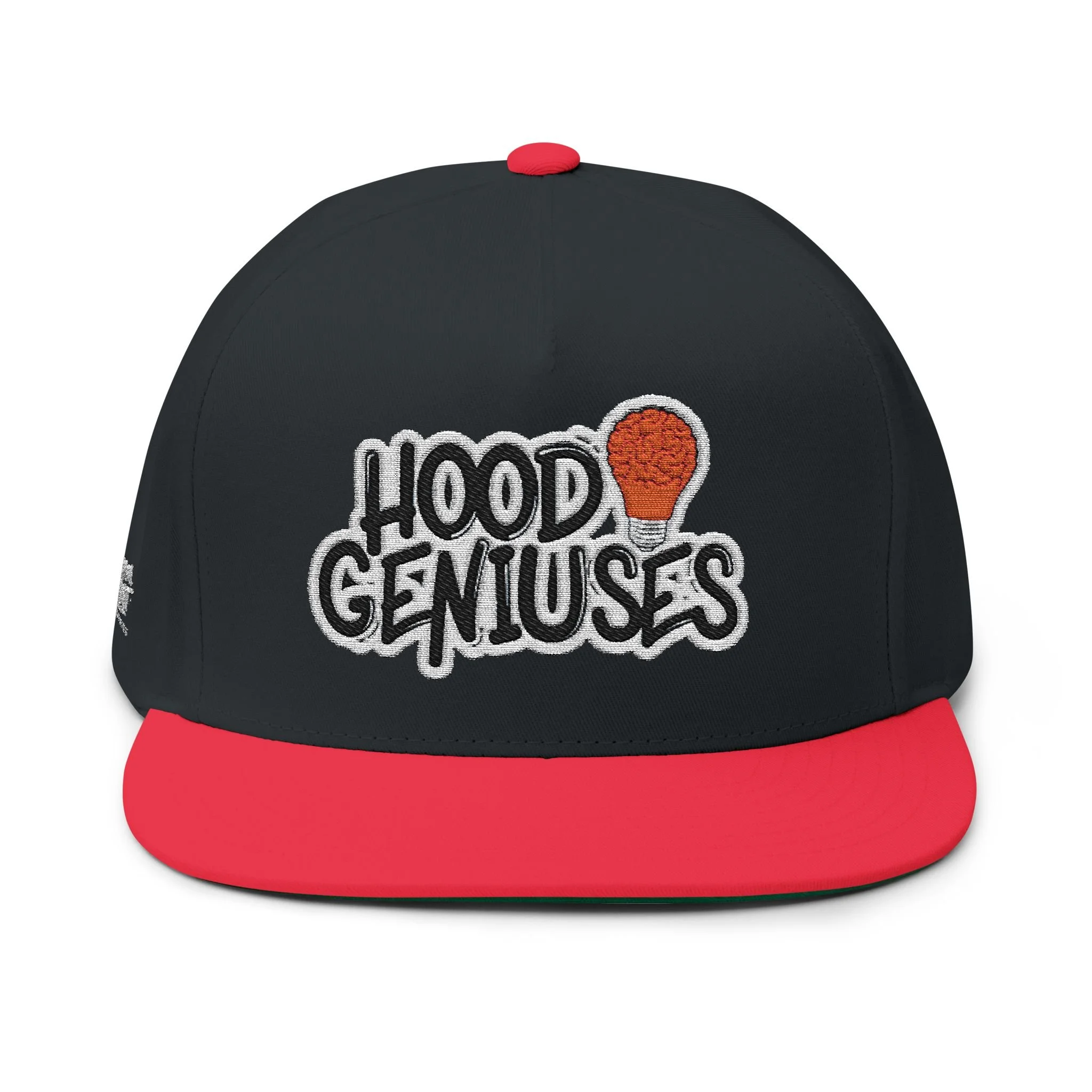 This structured, high-profile flat bill cap brings street-ready style with a vintage cotton twill feel. The bold embroidered “Hood Geniuses” patch and the small Dream First Clothing logo placed on the back and right side panel give it character that reads confident and clever. The five-panel construction and sewn eyelets keep the shape sharp while allowing airflow. A green undervisor adds a subtle retro contrast whenever you tilt the brim. The adjustable snapback lets you dial in a comfortable fit for everyday wear or when you just want to look stylish while strolling in the city.